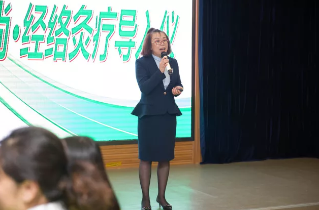 商学院中医讲师刘晶老师为与会家人讲解云尚经络灸疗导入仪相关理论及实操方法。