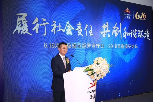 直销行业网讯 以推动直销行业健康发展,共建诚信经营环境,维护消费者合法权益为目标,6月15日,“履行社会责任,共创和谐环境——6·16无限极规范经营宣传日暨2018直销规范论坛”活动在广州举办。