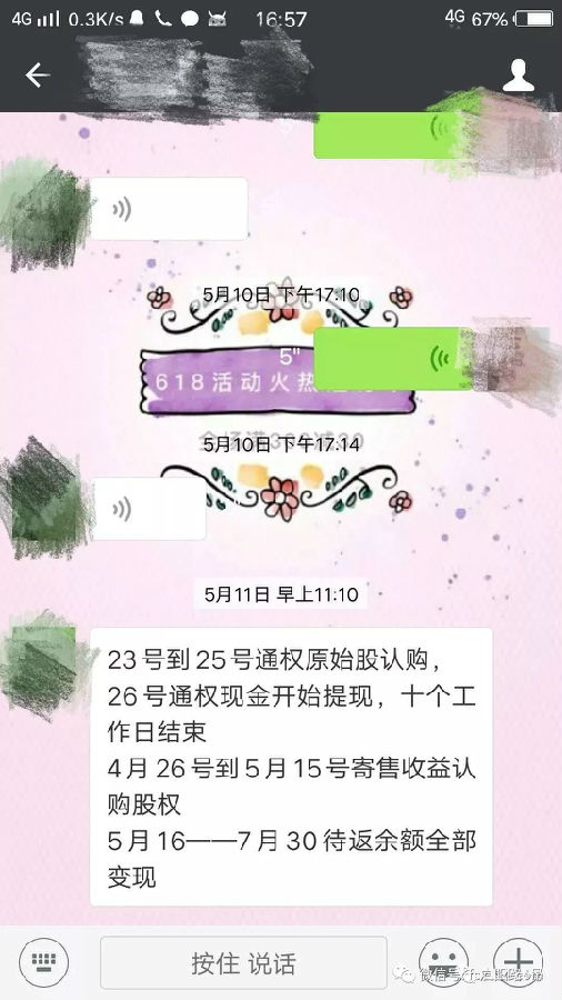 徐州地区的陈雪在易商通认识的一位朋友发给她的截图也显示,公司承诺对4月14日以前加入的投资者,会在7月30日以前返还全部金额。