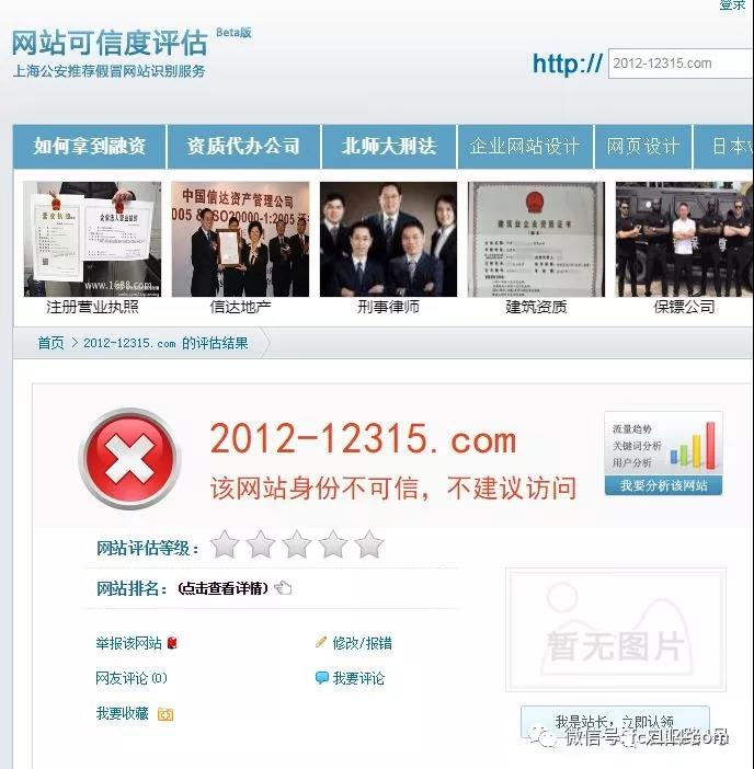 凤凰网财经查询此网址发现,该域名已被上海公安推荐的假冒网站识别服务网站评为“该网站身份不可信,不建议访问”。此外,有网友在网上交易保障中心询问此网站是否可靠,网上交易保障中心回复称“网上投资理财存在风险,我们已接到很多类似的投诉,且警方已发布警民提示,建议不要轻信丰厚回报之说。”