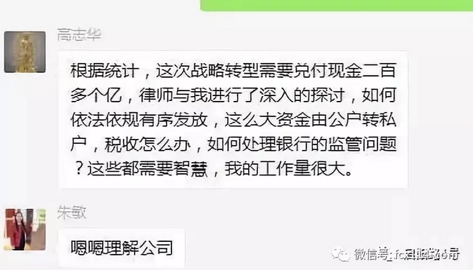 投资者提供的一张微信群截图显示,易商通的董事长曾这样安慰不安的投资者:“这次战略转型需要兑付现金二百多个亿,律师和我进行了深入的探讨,如何依法依规有序发放,这么大资金由公户转私户,税收怎么办,如何处理银行的监管问题?这些都需要智慧,我的工作量很大。”