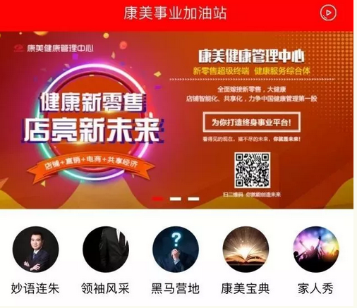 今年,朱总再次捕捉到新趋势,在原有的多渠道教育培训基础上,结合移动智能终端、互联网技术等,特为康美伙伴定制了线上教学平台——“康美事业加油站”,为康美伙伴加油助力,让他们通过碎片化时间的学习,重塑自己,成为更好的自己。听大咖说,跟随大咖一起行动,成为下一个大咖!