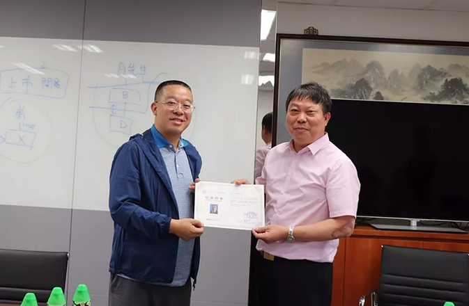 国际仲裁员、湖南省人大代表潘传平律师为胡国安董事长颁发结业证书