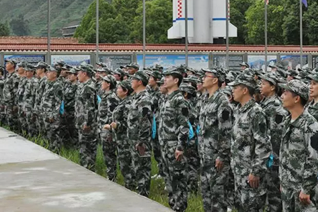 在西昌奔月基地集结完毕的新时代人英姿飒爽、整齐划一。