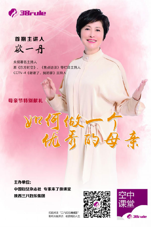 “婧媛荟空中课堂”首期开讲,邀请到了央视著名主持人,前《焦点访谈》、《东方时空》的主持人敬一丹。敬一丹女士是中国广播电视学会主持人节目研究会副会长、中国广播电视协会播音主持委员会副理事长、中国传媒大学兼职教授、上海交通大学人文与艺术研究院兼职教授、重庆大学美视电影学院硕士研究生导师。而现在,她也成为了“中国妇女杂志社·三八妇乐婧媛荟空中课堂”的特约嘉宾讲师。