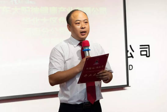 崔常松经理致欢迎辞,对公司高层的关怀表示衷心感谢。他回顾过去,太阳神河南分公司2011年成立以来,得到了政府部门的支持,在公益活动,市场服务,党建等方面作出积极贡献,受到社会广泛认可,为河南市场的稳定发展扎下根基。