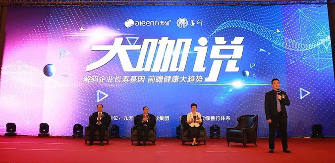 直销行业网讯 九天绿新品发布会现场,九天绿健康产业集团董事长黄添友教授领衔九天绿健康产业集团副总裁、九天绿健康产业研究院院长刘国章教授、广东岭南职业技术学院学术委员会副主任、世界中联药膳食疗研究院专业委员会常务理事汪碧涛教授,来到舞台上,在九天绿集团教育总裁王宽先生担纲《大咖说》主持下,进行了一场高端访谈,围绕“健康、使命、科技、创业”四大核心,共同论道中医新未来、探讨大健康企业基业长青的基因和大健康产业趋势,带领大家远离《我不是药神》的悲剧,活出健康、活出幸福!