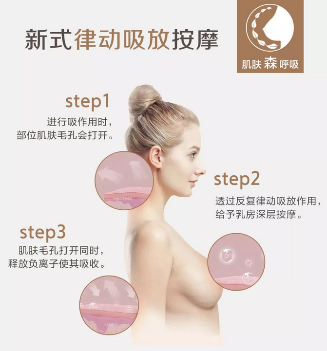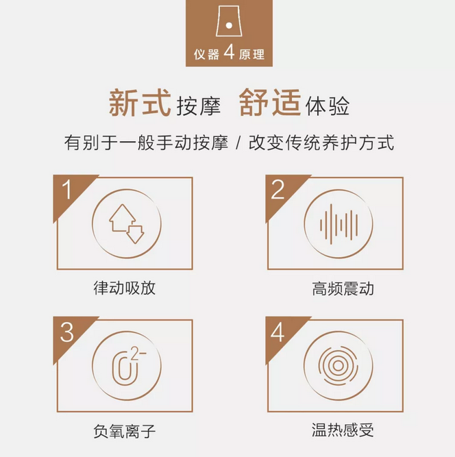 肌肤弹润:律动吸放按摩让肌肤有规律性运动,进而提升肌肤弹性。