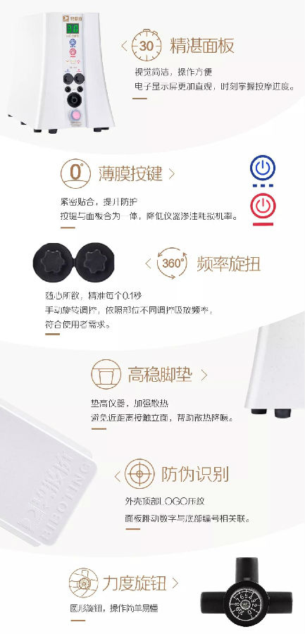 健康负离子:按摩持续释放负离子,帮助肌肤吸收