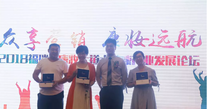 大会在嘹亮的国歌声中华丽开场。福瑞达康妆大道黄晓东总裁首先致辞。黄总表示,路漫漫,我们始终不忘初心、感恩前行,把“个人梦”和“康妆梦”紧密结合起来。随后,福瑞达康妆大道市场部高级经理李超就“大背景 大时代 大平台”向现场各位家人做了详细阐述。