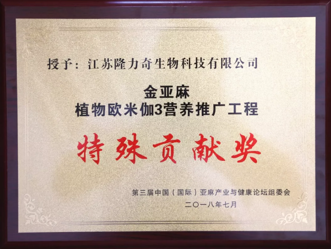 ▲“金亚麻植物欧米伽3营养推广工程特殊贡献奖”获奖单位
