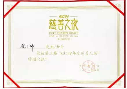 ▲徐之伟荣获第三届“CCTV年度慈善人物”