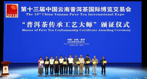 在此次茶博会上为“普洱茶传承工艺大师”颁发荣誉证书和奖杯,不仅营造了云茶产业“尊重知识、尊重人才、传承文化、珍惜荣誉”的良好行风,同时也为中国茶行业树立了典型,鼓励大师传承工艺,传播茶文化,推进茶产业的不断发展,为打造“绿色食品牌”、实现“千亿云茶产业”目标作出贡献。
