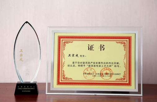 卫宗成大师喜获“普洱茶传承工艺大师”殊荣