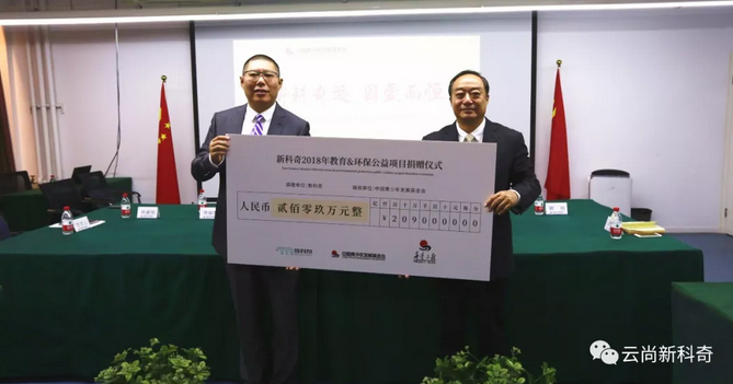本次捐赠仪式以“新科奇迹,因爱而恒”为主题,新科奇向中国青基会捐赠209万元,用于希望小学捐建及保护母亲河项目捐建,从教育扶贫、环保公益着手,新科奇公益行动计划正式启动。