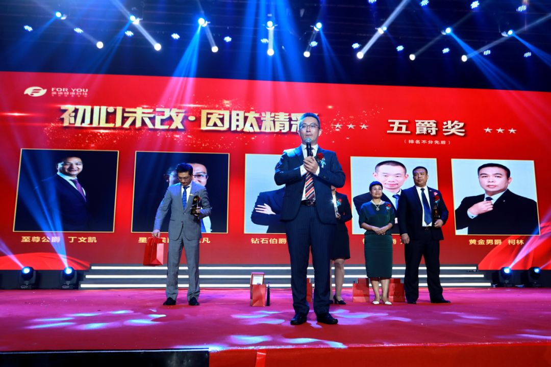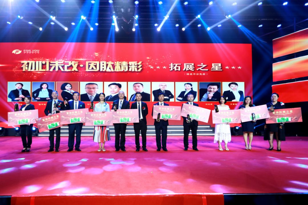 风云冕功勋,名满誉星徽。星耀盛典上,富佑集团高管为鞠躬尽瘁的富迪家人们颁发了“富迪五爵奖”“富迪十星将”“富迪十八勇士奖”“富迪百强精英奖”和“富迪拓展之星”等奖项。献给他们的是最瞩目的舞台,最耀眼的荣誉,最豪华的大礼。是他们这一群人,肩上有担当、心中有阳光、脚下有力量,是他们用实力赢得尊严、用真诚赢得尊重、用爱心博得天下,用坚持成就富迪。富迪人在奋斗的路上张扬着一身傲骨风华,是用心做好当下,用行动诠释灵魂,他们身上所具有的,是进取的锐气,是忘我的精神,是大爱的胸怀。