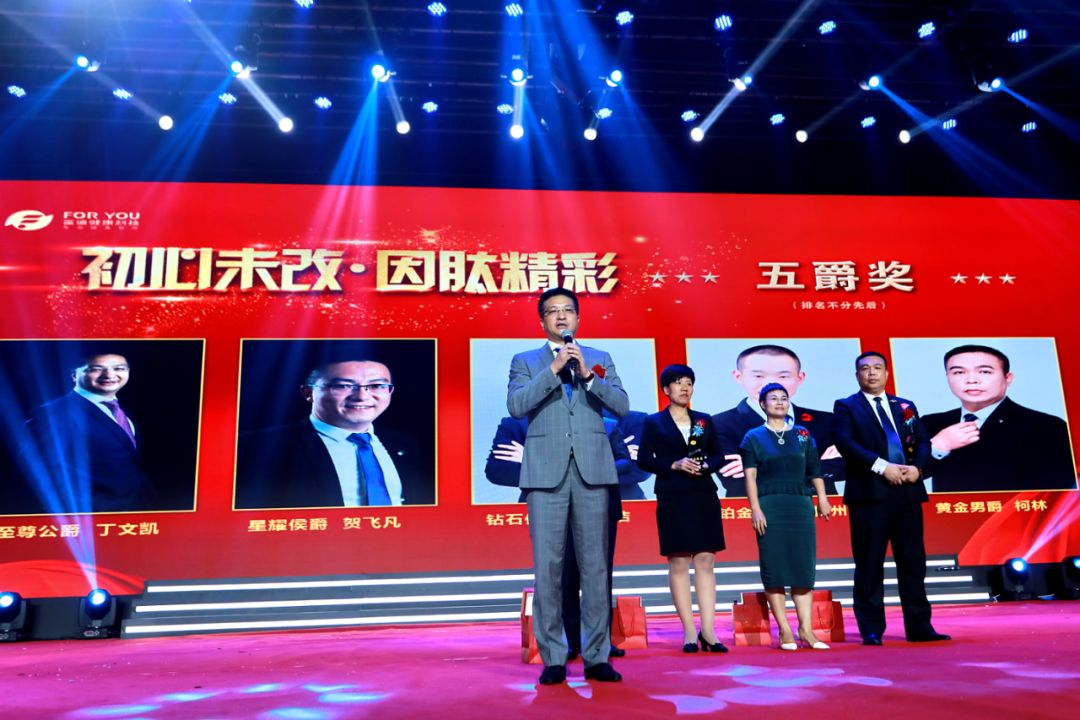 作为富佑集团董事局主席,陈怀德先生在致辞时激情满怀地说:今天,来自全国各地的2000多位富迪家人共聚一堂,我代表富迪公司和公司全体员工表示最热烈的欢迎和最衷心的感谢!上个月的10号,我们也是在这里,举行了“富迪肽”的7月份业绩表彰庆典,短短一个月时间里我们又举办业绩表彰星耀庆典,在这么一个特别的日子里,发自内心感恩感谢为富迪的事业作出了卓越贡献的市场领导人和公司的全体员工,是他们的辛勤付出,用全身心去传播富迪这个大爱的事业,才有了富迪今天的成绩。