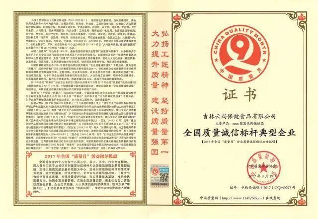 2018年,吉林云尚再次荣获“全国百佳质量诚信标杆示范企业”称号,这不仅是对产品的认可,更是对吉林云尚产品质量的肯定,彰显出吉林云尚品牌的综合硬实力。