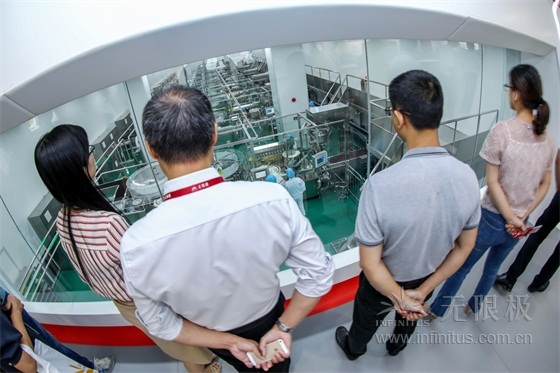 透过窗口近距离观看口服液智能生产线,一瓶口服液生产的全过程就展示在你眼前。
