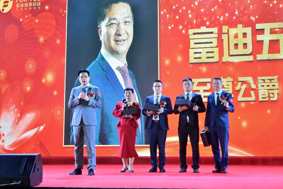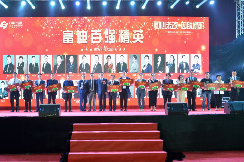 连续八届荣膺“中国十大慈善家”、 中国经济十大商业领袖、中国扶贫开发协会副会长、全国工商联美容化妆品业商会副会长、民建中央对外联络部副部长、广东省第十二届人大代表、富佑集团董事局主席陈怀德先生,连续三届荣膺中国十大慈善家、广东省营养健康产业协会副会长、广东省富迪慈善基金会理事长胡静女士,富迪健康科技有限公司营销总裁王年成先生,富迪健康科技有限公司健康管理学院执行院长袁伟先生,富迪健康科技有限公司营运副总裁李家杰先生等富佑集团高管,以及富迪资深经销商丁文凯先生、欧子力女士、贺飞凡先生、蒋岢成先生、孙一诚先生等2000多名富迪家人汇聚一堂,共同见证了这次“富迪肽”业绩表彰庆典的盛大召开。