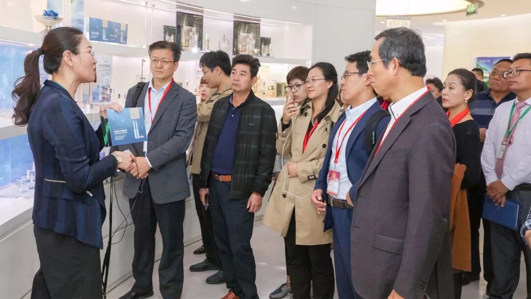 上午九时,考察团一行抵达绿叶总部,绿叶科技集团董事长徐建成、高级副总裁韩静携集团高管热情迎接。在徐董的全程陪同下,考察团详细参观了绿叶科技集团的研发中心、生产制造中心及产品展厅等处。通过实地考察,绿叶的科技创新、产品设计、电商平台和新零售业态各方面的发展情况得到行业领导和专家们的热情赞誉。