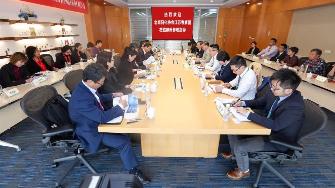 2018年10月25日,为加强北京日化协会和江苏日化协会、苏州日化协会以及协会企业之间的合作交流,在江苏日化协会、苏州日化协会的陪同下,北京日化协会考察团来到绿叶科技集团进行全面考察调研,领导专家们就行业新科技、模式创新、协会发展等内容做充分交流。