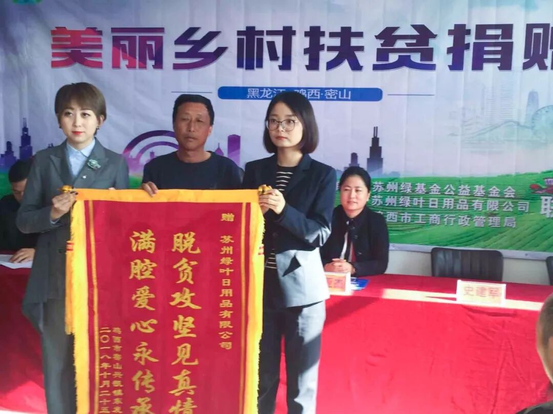 2018年10月25日,爱心企业绿叶科技集团携手黑龙江鸡西市工商行政管理局来到密山市兴凯镇东发村,开展“煤城扶贫,绿叶先行”精准扶贫公益捐助活动。