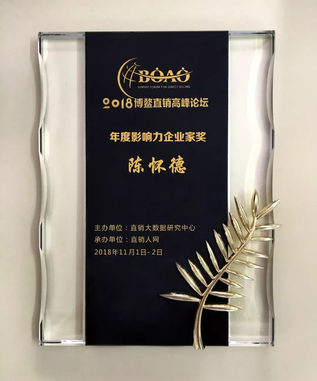 ▲2018博鳌直销高峰论坛“年度影响力企业家”陈怀德先生