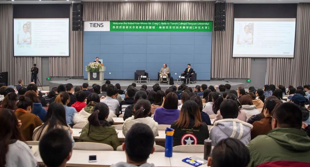 2018年11月14日,应天狮集团邀请,诺贝尔奖得主、美国马萨诸塞州大学医学院分子医学教授克雷格•梅洛(CraigC.Mello, PhD.)亲自到访天狮集团和在天狮学院基础上筹建的天元大学。梅洛教授本次来访,正式受聘为天狮国际发展研究院顾问与天元大学学术顾问,并在天元大学与在校师生进行学术交流。借此次访问交流的机会,双方将建立长效的沟通机制,为全球大健康领域与顶尖学术教育事业共同作出贡献。