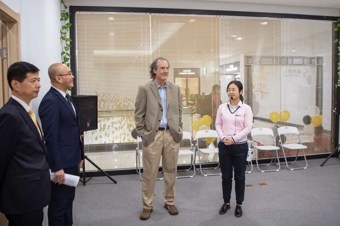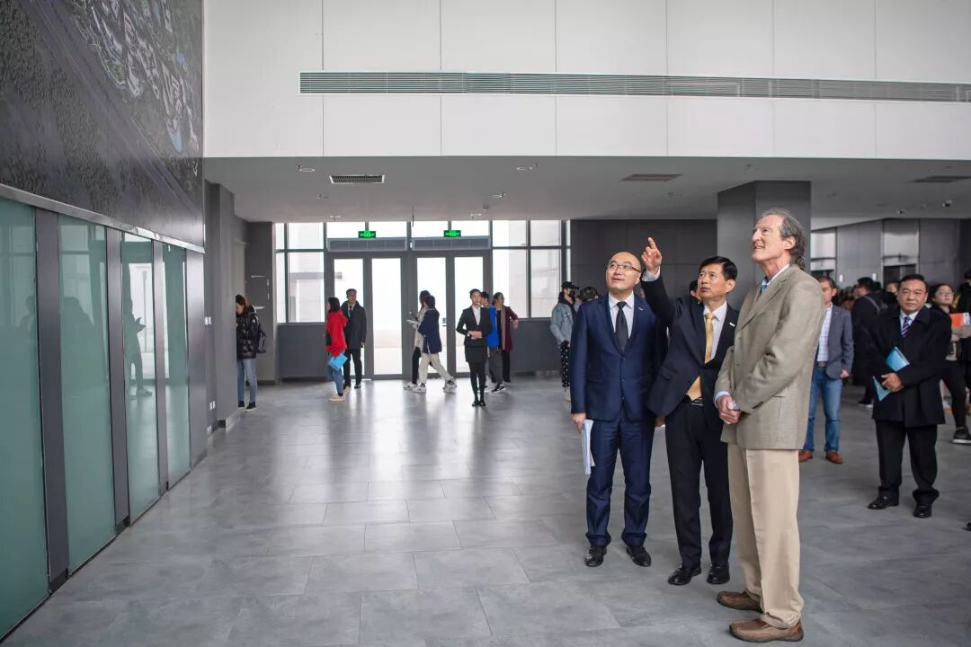 会谈结束后,阎玉朋陪同梅洛教授参观建设中的天元大学,并在“友谊与和平”纪念碑揭幕仪式中共同栽种了一株寓意着友谊与和平的法桐树。纪念碑揭幕仪式过后,阎玉朋与梅洛教授一行移步至交流厅会场,开始了与天元大学在校师生的交流座谈。天元大学校长张俊喜主持交流座谈会,代表校方感谢梅洛教授来访,并详细介绍天元大学发展情况。