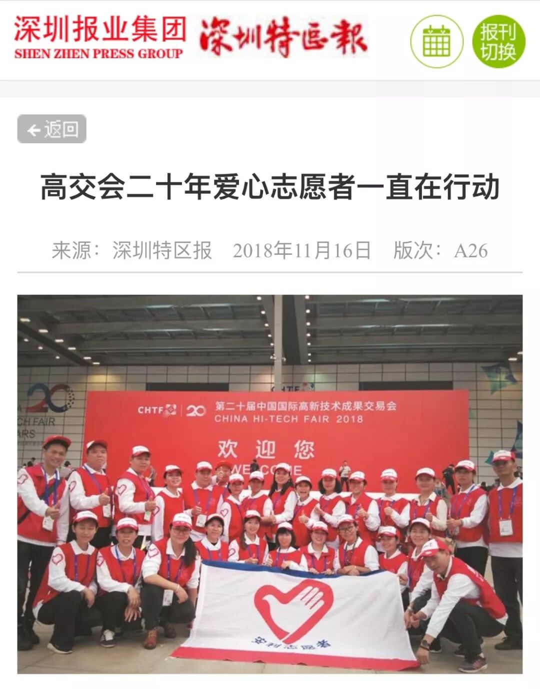 今年是深圳特区成立三十八周年,高交会也迎来了第二十岁的生日。这座城市不仅是科技创新之城,也是一座充满爱心的志愿者之城,“来了,就是深圳人”是深圳的城市标语,而标语背后的开放与包容,早已渗入深圳发展的血液里。未来,更多的志愿者们还将继续书写他们与这座城市的爱心故事。