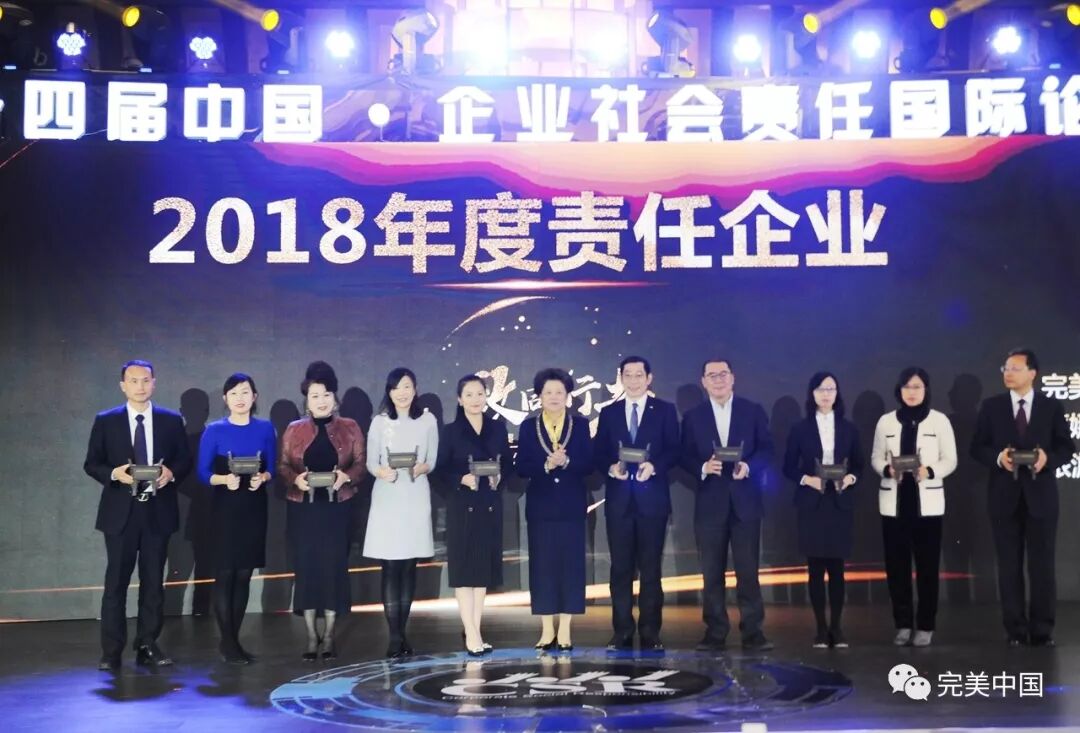完美公司、中国石油天然气集团有限公司、中国石油化工集团有限公司、国家电网有限公司、中国工商银行、中国邮政储蓄银行等二十家企业荣获“2018年度责任企业”。