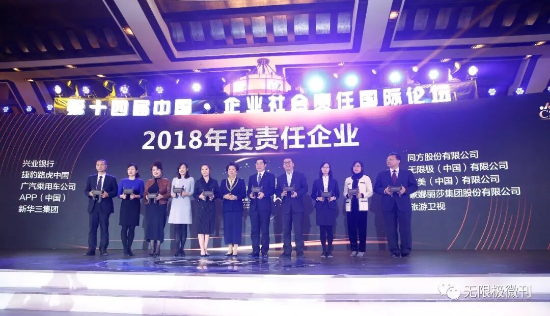 在“责任中国”荣誉盛典环节,主办方对过去一年中,在社会责任领域做出突出贡献的企业给予了肯定。本次评选面向所有在中国境内合法注册的不同所有制企业和主体,综合了公众参与和专业评估等维度。经过层层选拔,无限极最终获评“2018年度责任企业”奖。