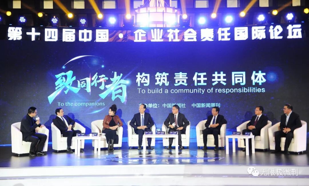 在“责任对话”环节,无限极(中国)有限公司媒体事务总监张前先生与来自中国石化、大众汽车集团(中国)和同方股份有限公司等知名企业的代表展开了深度对话,探讨了在改革开放40周年和精准扶贫关键年的大背景下,企业如何发挥资源优势,不断打造专属的责任样本。张前先生说:“品牌和责任不是简单的叠加,而是高度的融合。责任赋予品牌更多的价值,品牌促进企业承担更多责任。”