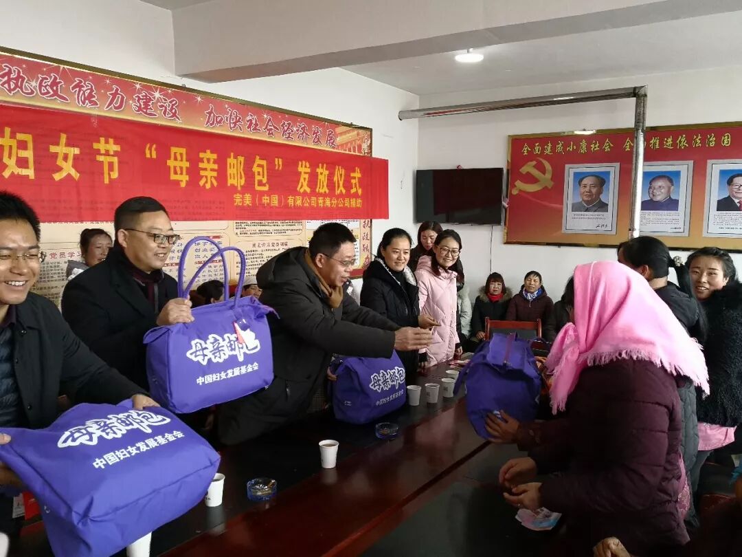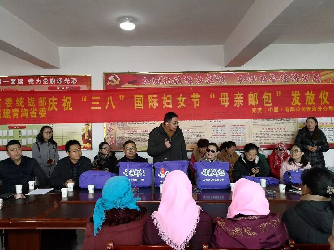2019年3月8日,完美青海分公司携手青海省省委统战部、民建青海省委走进海东市乐都区峰堆乡上一村进行母亲邮包的捐赠仪式。