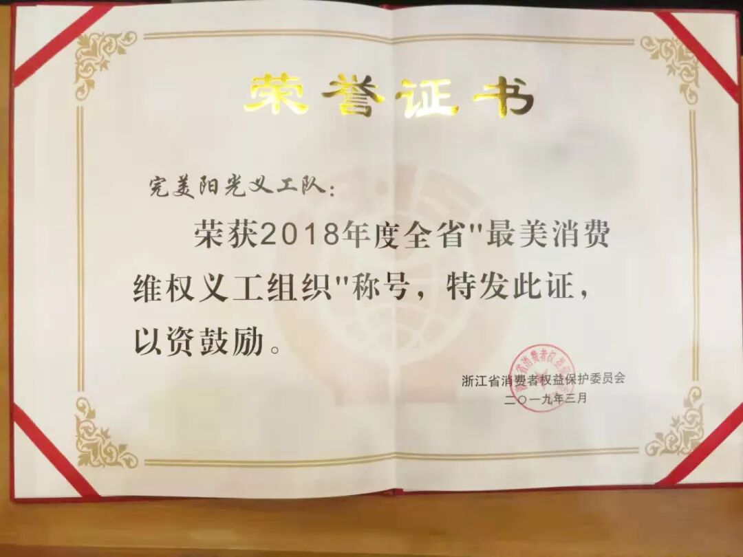 3月15日,浙江省消费者权益保护委员会在浙江省人民大会堂召开2019年“3·15国际消费者权益日”纪念大会。会议总结回顾了“放心消费者在浙江”行动两年来取得的工作成效,同时表彰了2018年度浙江省“最美消费维权义工”和“最美消费维权义工组织”。全省共有五家义工组织获得了“最美消费维权义工组织”称号。“完美阳光义工队”有幸成为其一并上台接受了领导的颁奖。