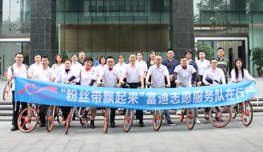 为践行富迪健康科技有限公司“专注绿色生活”的集团使命,4月4日下午,“粉丝带飘起来”富迪志愿服务队开展了以“低碳生活,从我做起”为主题的公益骑行活动,20余位志愿者积极主动参加。