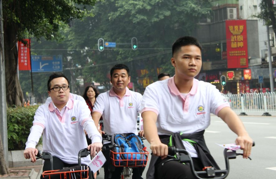 身着统一服装骑着共享单车的志愿者们,以此方式亲自践行“低碳、环保”理念,为建设良好的生活环境贡献一份力量,成为了路上一道亮丽的风景。