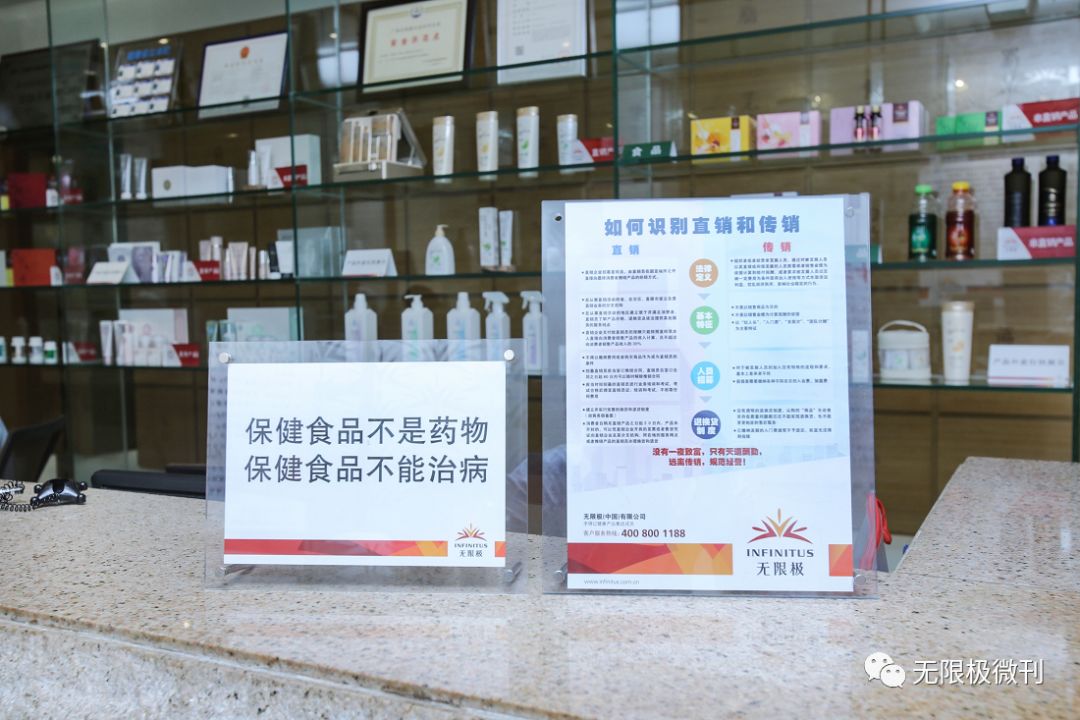 实施专项整改“十项措施”以来,无限极在公司官网、APP、微信公众号、微博、服务热线、销售小票和销售系统界面等消费者能够接触到的环节,统一发布了“保健食品不是药物,保健食品不能治病”的警示语。2月1日,分公司服务中心已全部完成警示语的摆放和张贴;截至3月13日,所有专卖店均已完成警示语的摆放和张贴。