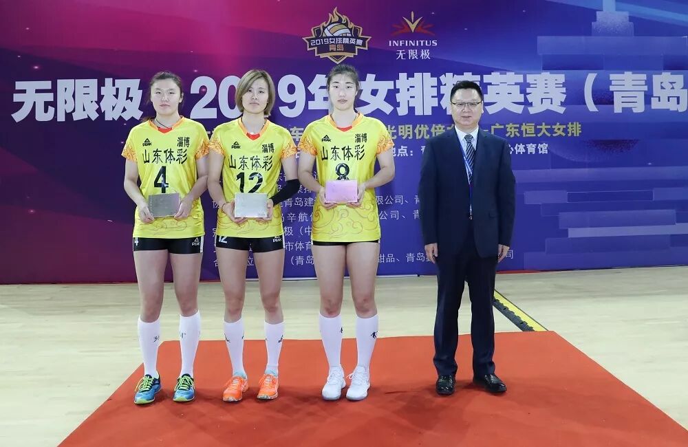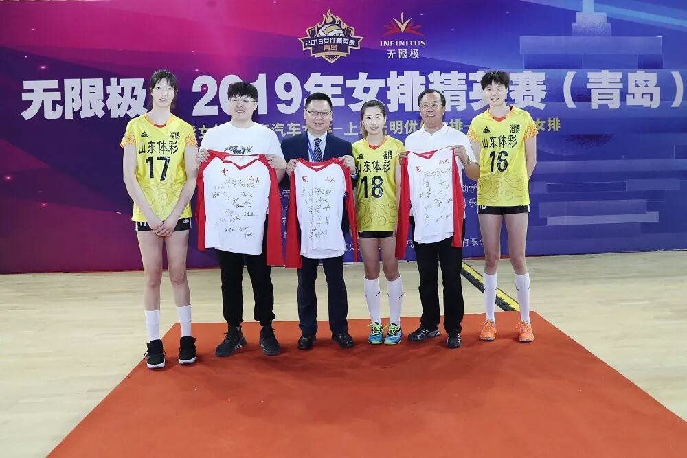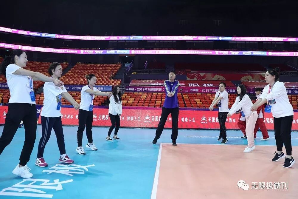 作为2019年女排精英赛(青岛)的独家冠名商,无限极(中国)有限公司的代表们为女排姑娘们送上了贴心的礼品。