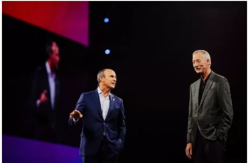 美国安利公司董事会联合主席德·狄维士和史提夫·温安洛在安利60周年庆典活动中