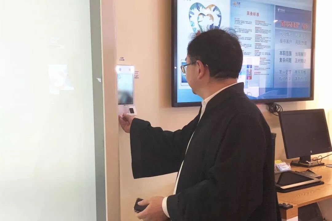 ▲原告委托代理律师刷身份证进入E法庭