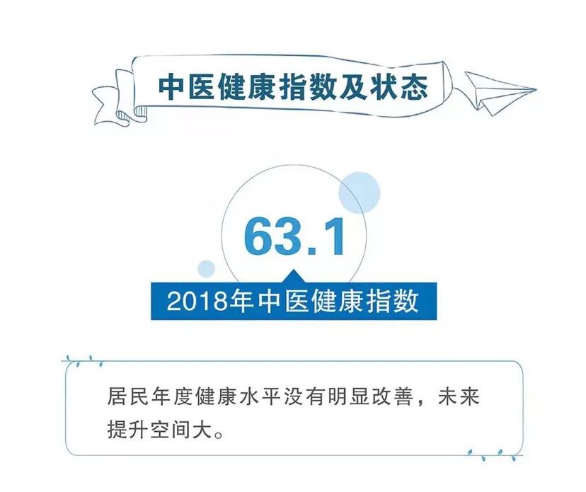 该报告指出,2018年全民中医健康指数为63.1。数据显示,有一半人群处于疾病状态或中间状态,需要重点关注和调理。