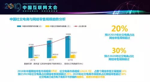 报告指出,2019年社交电商保持高速增长,预计市场规模达20605.8亿元,同比增长高达63.2%。2019年社交电商消费者人数已达5.12亿人,成为电子商务创新的主要力量。2019年社交电商从业人员规模预计将达到4801万人,同比增长为58.3%,社交电商行业的参与者已经覆盖了社交网络的多个领域。预计2019年社交电商占比网络零售规模超过20%,2020年社交电商市场规模占比网络零售超过30%,社交电商已成为电子商务不可忽视的规模化、高增长的细分市场。