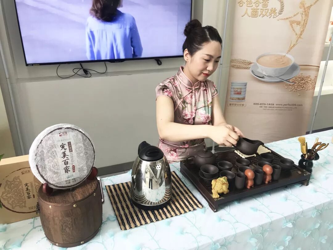 工作人员通过介绍完美百家普洱茶的冲泡方法及饮茶礼仪,结合现场品茗搭配臻萃舒谷物棒糕点,让顾客对茶文化有了一定的了解。 互动游戏好玩又有趣,与公司健康美丽的理念结合,提升了现场完美人及顾客高涨的情绪,为了能够让其他未能来到现场的完美人及顾客感受到活动气氛,上海分公司特地安排了现场直播。