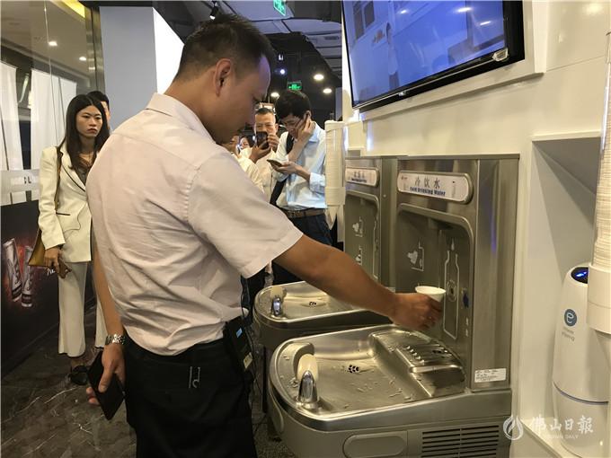 佛山品牌企业高管现场体验净水设备的功能,佛山日报记者 李嘉雯摄
