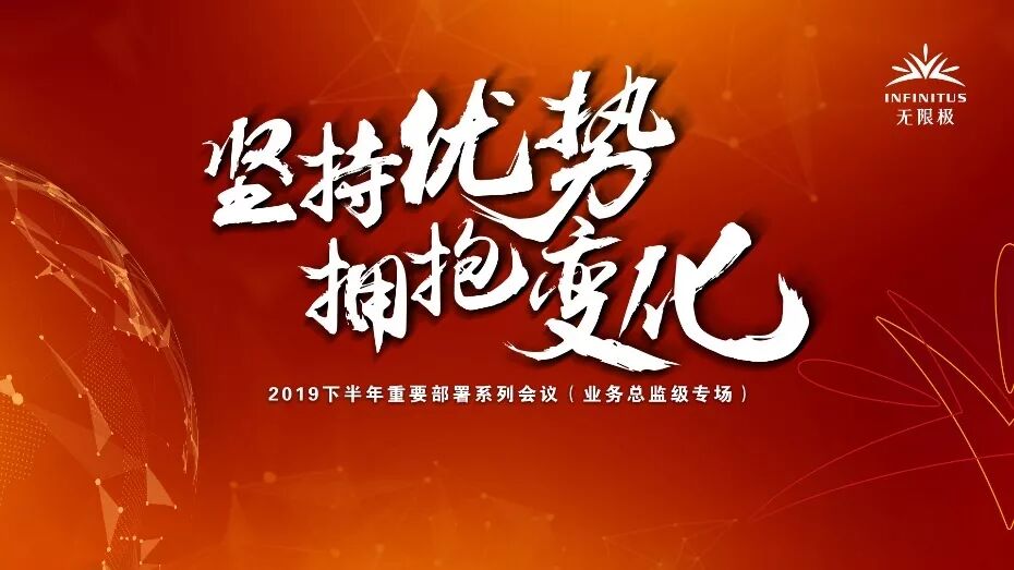 8月9日,在新会无限极大学,以“坚持优势 拥抱变化”为主题,公司召开了2019下半年重要部署系列会议(业务总监级专场)。公司与高阶市场领导人一起,学习健康行业的利好与“干货”,明确接下来公司的三项重要部署,坚定信念,刷新认知,携手共进。 三项重要部署分别是:营造环境促发展、助力行动增收益、优化模式赢未来。 无限极(中国)有限公司业务副总裁李冰先生代表公司,向大家详细介绍了第一、第二项重要部署。 第一项重要部署——营造环境促发展,公司将立足当下,把握“健康中国”新机遇,全面布局,和权威媒体、行业专家等广泛合作,提升品牌美誉度,从而营造良好的经营环境,提振顾客和伙伴的信心,促进业务的稳健发展。 第二项重要部署——助力行动增收益,公司将通过行动支持、工具支持、环境保障支持和各项利好,助力零售与推荐,推动小型活动大量开展,帮助基层伙伴提升收益,让市场获得更好的成长和更稳健的发展。 无限极(中国)有限公司市场副总裁薛守春先生,代表公司向大家介绍了第三项重要部署——优化模式赢未来。公司将把握移动互联网和电子商务的发展机遇,进行业务模式的优化,成立无限极电子商务有限公司,有计划地逐步开展电商业务,融合线上线下的优势,拓展更大的发展空间。 薛守春先生分享道,此次业务模式优化聚焦“合规、创新、发展”三个关键词,是更高合规性的顶层设计,是不断突破创新的有力之举,是赢得未来发展的策略部署。 在随后的解读、研讨环节,与会高阶市场领导人们进一步清晰了下半年重要部署的意义、发展方向和行动重点。该环节结束后,首席业务总监刘莉女士、梁雪女士、毕寒风先生和刘喜杰女士,作为高阶市场领导人代表分别进行了分享。 在此次会议上,公司还特意邀请了中国保健协会副理事长周邦勇先生,解读“健康中国”战略的相关内容,展望健康产业的发展前景。 日前,由新华社经济参考报社、中国保健协会、国家卫生健康委卫生发展研究中心、中国卫生经济学会四家权威机构共同发起的《中国健康经济白皮书》(以下简称《白皮书》)的起草工作即将开展。无限极将作为唯一副主编单位参与《白皮书》起草,并将协办《白皮书》系列活动。 为此,国家卫生健康委卫生发展研究中心健康保障研究部主任、研究员郝晓宁博士,为大家介绍了白皮书的重点规划内容,并解读了健康经济的发展趋势。 无限极全球行政总裁、无限极(中国)有限公司副董事长兼行政总裁俞江林先生,给大家带来了以“奋勇攀登 坚定前行”为主题的精彩分享。 俞江林先生结合自己近期与行业专家、同行及媒体交流的经验,分享了四点个人启示:保健食品的存在价值,不可否认;中医药在疾病治疗与预防中的特殊作用,不可替代;“百日行动”,整治的是“乱象”;直销将进入高质量发展时代。 未来是美好的,但正所谓“无限风光在险峰”,想要欣赏高处美丽的风景,就要奋勇攀登,坚定前行。俞江林先生鼓励大家:心中有使命,脚下才有力量;培养逆商;找到掌控感。 “山就在前方,攀登才会到达;路就在脚下,前行才有希望。我相信,只要我们客企一体,坚持优势,拥抱变化,奋勇攀登,坚定前行,我们一定能战胜一切挑战,迎来下一轮的发展!” 在会议的最后,在公司核心管理团队以及首席业务总监们的带领下,与会全体行政员工和业务伙伴共同宣誓:“坚持优势,拥抱变化,奋勇攀登,坚定前行!” 2019是变化和挑战之年,2019是改变和自我完善之年,2019也是充满机遇和希望之年。让我们客企一体,坚持优势,拥抱变化,跨越高山、大海,一起创造更加美好的未来!