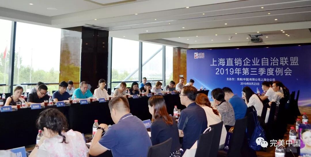8月23日,由完美(中国)有限公司上海分公司承办的上海直销企业自治联盟2019年第三季度例会成功召开,上海市市场监管局反不正当竞争处(规范直销与打击传销处)领导,以及31家在沪直销企业出席了会议。