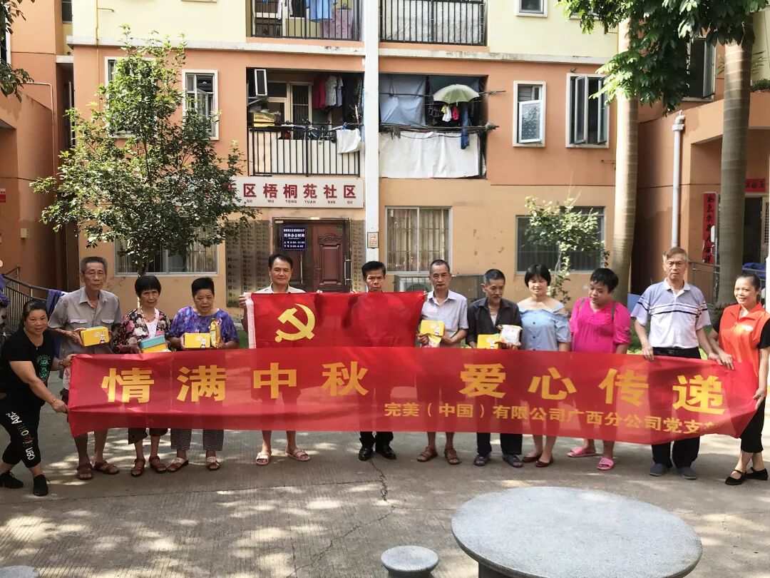 9月8日,在中秋节来临之际,完美广西分公司携手广西八桂义工协会,前往梧桐苑小区开展“慰问独居老人”公益活动,为老人们送去爱心月饼及礼品。八桂义工协会代表、志愿者以及完美广西分公司的爱心人士齐聚一堂,与老人共度团圆佳节。