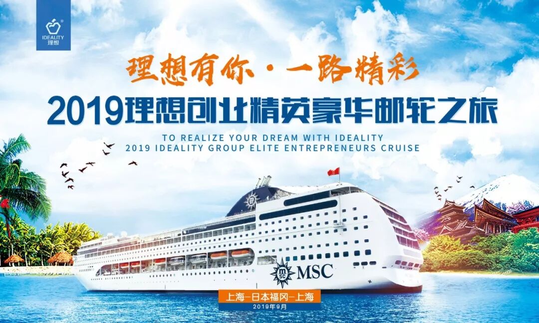 2019年9月3日-7日,“理想有你·一路精彩——2019理想创业精英豪华邮轮之旅”盛大举行。理想创业精英们欢歌聚首,激情四溢,带着对理想的憧憬,怀着所有理想人的殷切祝福,兴高采烈地踏上了理想邮轮游,正式开启旅程。 全国联动,荣耀加持 9月3日,高贵而奢华的地中海辉煌号邮轮从上海缓缓起锚,一段5天4晚的蓝色之旅正式起航。理想2019年邮轮之旅,各种高端设施设备,贴心温暖的舒适服务,家人们一起拥体验各式精彩,感受多元风情,奢享定制美味,尽享一段优雅美好的假日。 海上环游,理想之旅 9月4日,“2019理想创业精英豪华邮轮游”在邮轮上圆满举行。家人们举行了分享会,讲诉和理想的结缘,同时分享口碑产品。正是各位理想家人们的不离不弃、坚持不懈、全力以赴,激励着理想不断前进,才使得理想在直销的道路上越走越稳,越走越快。 悦动日本,福冈璀璨